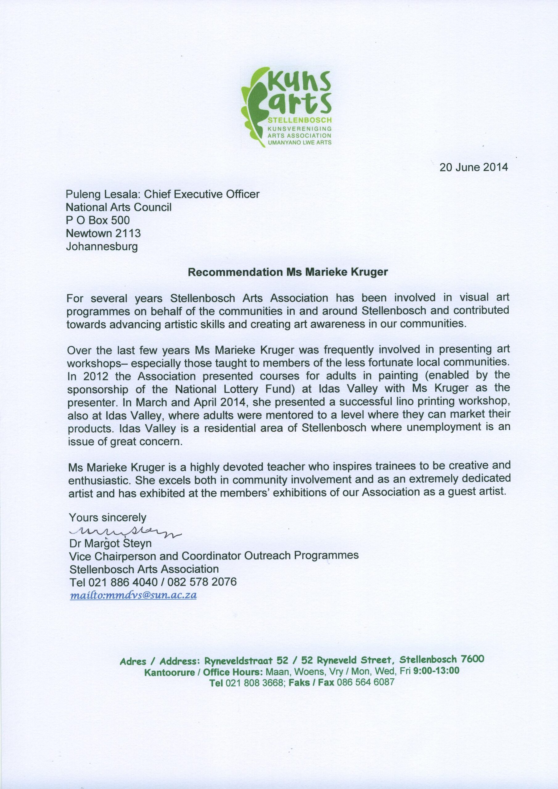 Head of Visual Art Department and Supervisor or recent Masters Degree studies in Visual Art, University of Stellenbosch.